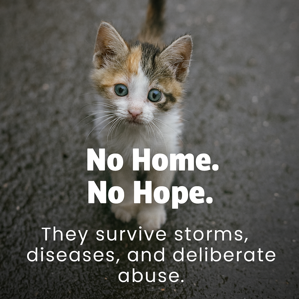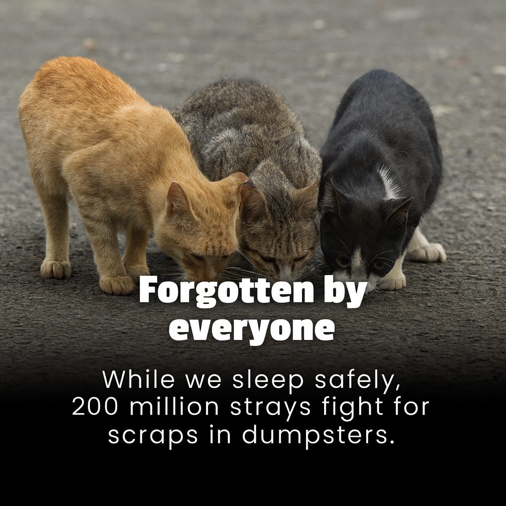 That's happening right now to millions of abandoned cats. Former pets, just like yours, thrown away and forced to dig through garbage just to survive another night.