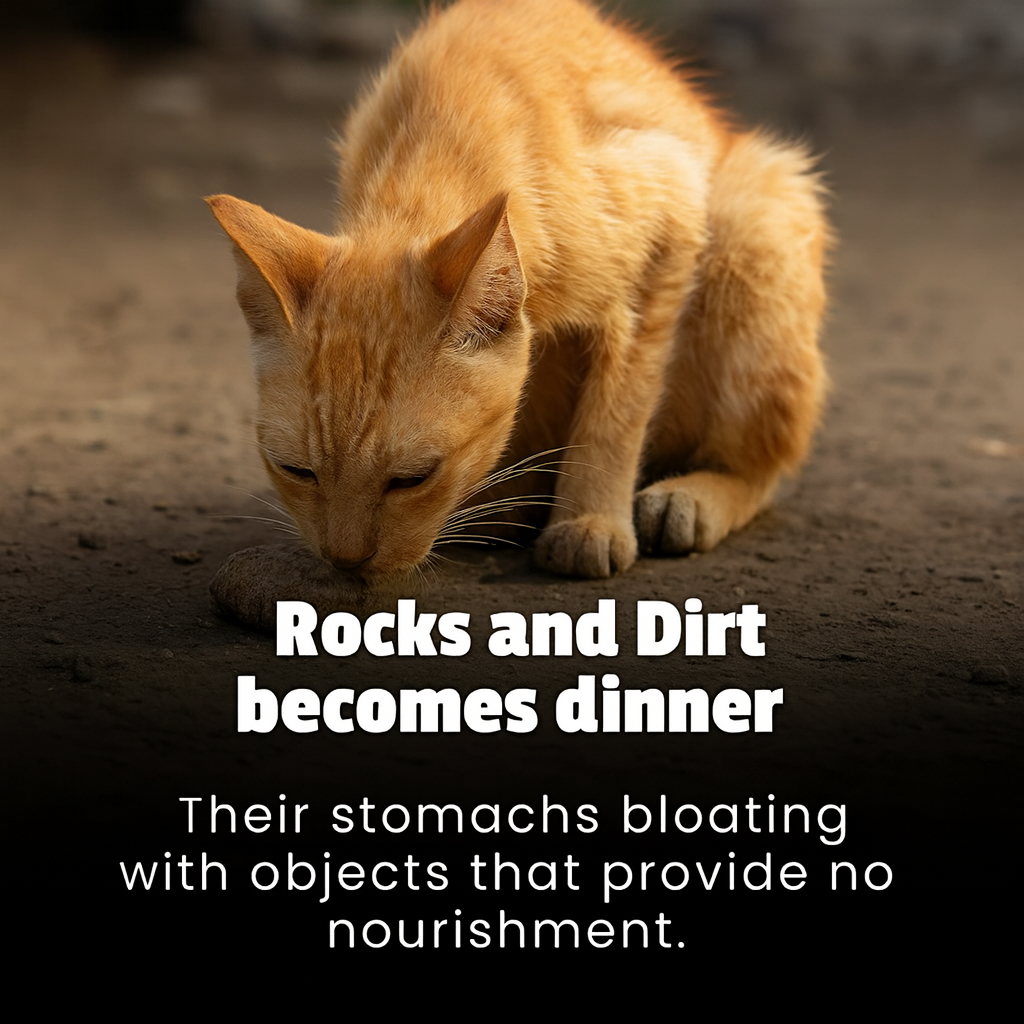 Picture your own pet desperately eating plastic and rocks because their stomach hurts so much from hunger.